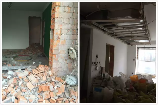 装修要动墙,自然不会是小工程。无论新房还是老房,每套房子的户型结构都是不同的。相应的,承重墙的改建要求也不一样,有时候并不能随读者意愿,想改就改。现场实地勘查,对照房型图纸对现场进行复核,可以更好地了解需要改建的墙体性质。很多施工人员上来就凿得做法,往往会造成下图中的混乱,是不可取的。